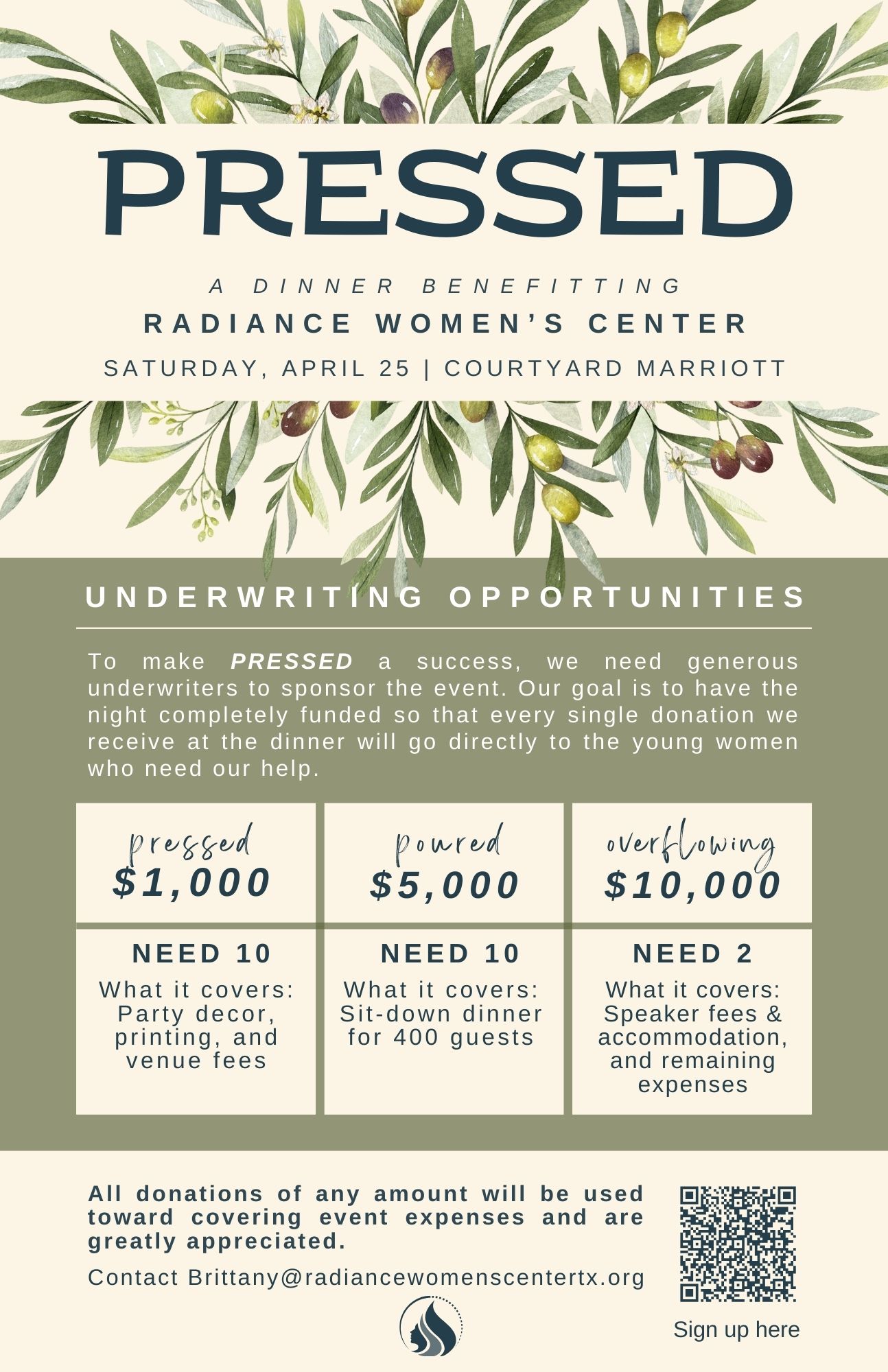 To make PRESSED a success, we need generous underwriters to sponsor the event. Our goal is to have the night completely funded so that every single donation we receive at the dinner will go directly to the young women who need our help.